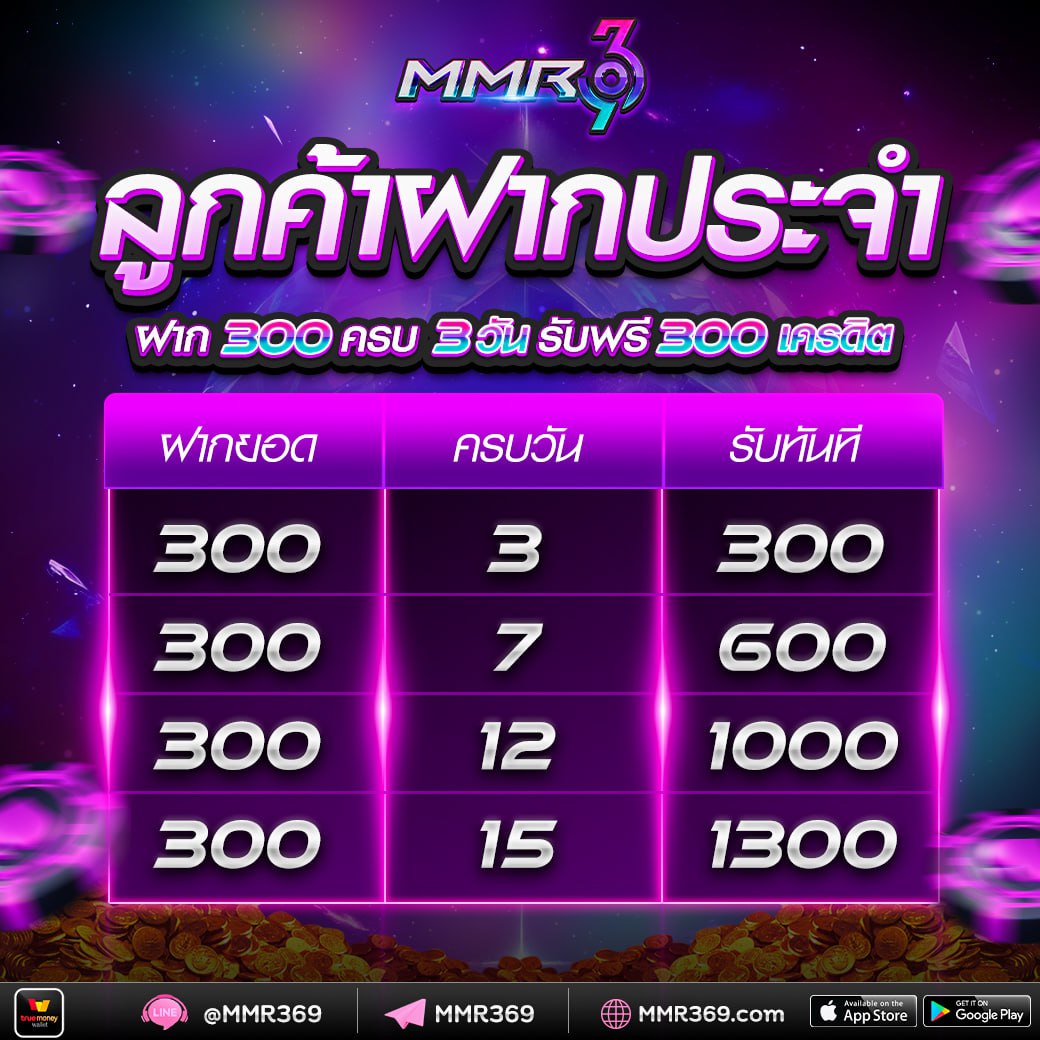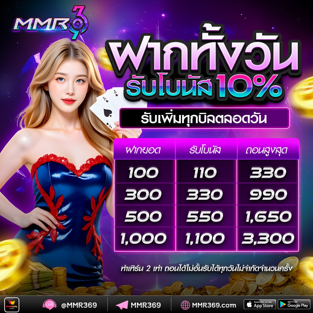 MMR369 มักจะจัดโปรโมชั่นและข้อเสนอพิเศษต่าง ๆ สำหรับผู้เล่นใหม่และผู้เล่นที่มีประสบการณ์อยู่แล้ว ไม่ว่าจะเป็นโบนัสต้อนรับ, โบนัสฝากเงิน, หรือแม้แต่การคืนยอดเสีย โปรโมชั่นเหล่านี้ทำให้ผู้เล่นมีโอกาสในการเพิ่มทุนและสร้างกำไรจากการเล่นเกมมากขึ้น